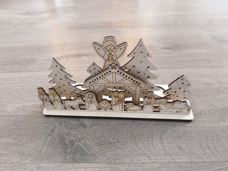 De kerststallen worden als bouwpakketje (plat) verzonden zodat je bij de grote kerststal zelf kunt bepalen of je de waxinelicht uitsparingen voor of achter de kerststal terug laat komen.